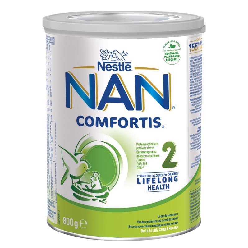 NAN COMFORTIS 2 je prijelazna mliječna hrana za dojenčad. Proizvod je primjeren za dojenčad stariju od šest mjeseci. Jedinstvena kombinacija sastojaka: optimizirane bjelančevine sukladno dobi djeteta, kako u kvalitativnom tako i u kvantitativnom pogledu; L. reuteri kultura - sličan soj može biti prisutan u crijevnoj flori dojene djece; s vlaknima - FOS/GOS; sadržava DHA, skladno zakonodavstvu za sve prijelazne formule; samo laktoza - jedini ugljikohidrat prisutan u proizvodu NAN COMFORTIS 2.