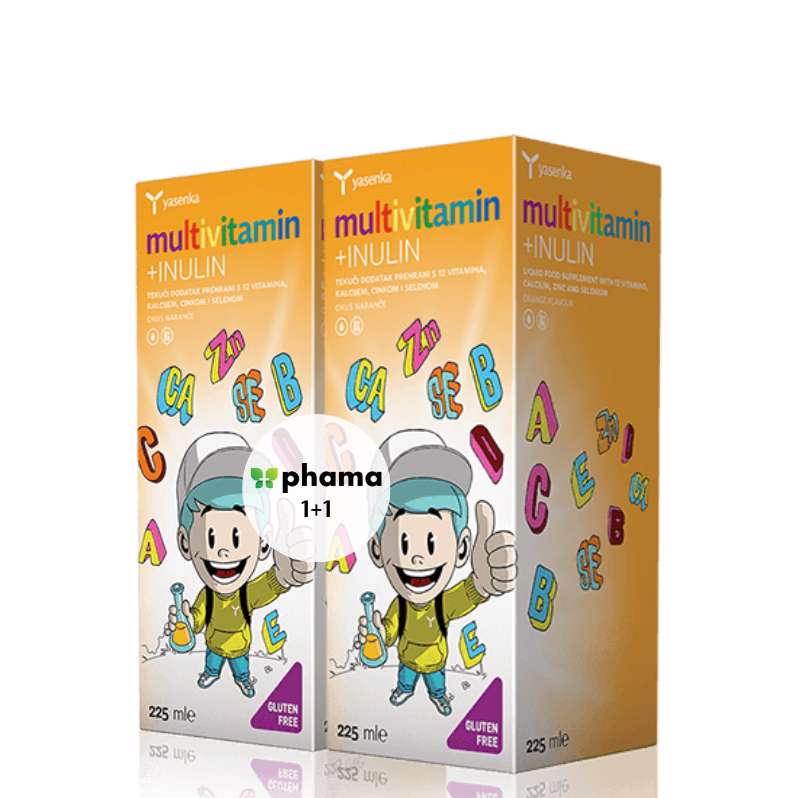 Vitamini prisutni u Yasenka multivitaminu doprinose normalnom metabolizmu stvaranja energije, normalnoj funkciji imunološkog sustava, smanjenju umora i iscrpljenosti te održavanju normalnog vida djeteta. Uz jak vitaminsko – mineralni status multivitamin sadrži čak 500 mg INULINA koji služi kao izvor hrane korisnim bakterijama te povećava apsorpciju hranjivih tvari u crijevima i samim time održava crijevnu floru zdravom i funkcionalnom.