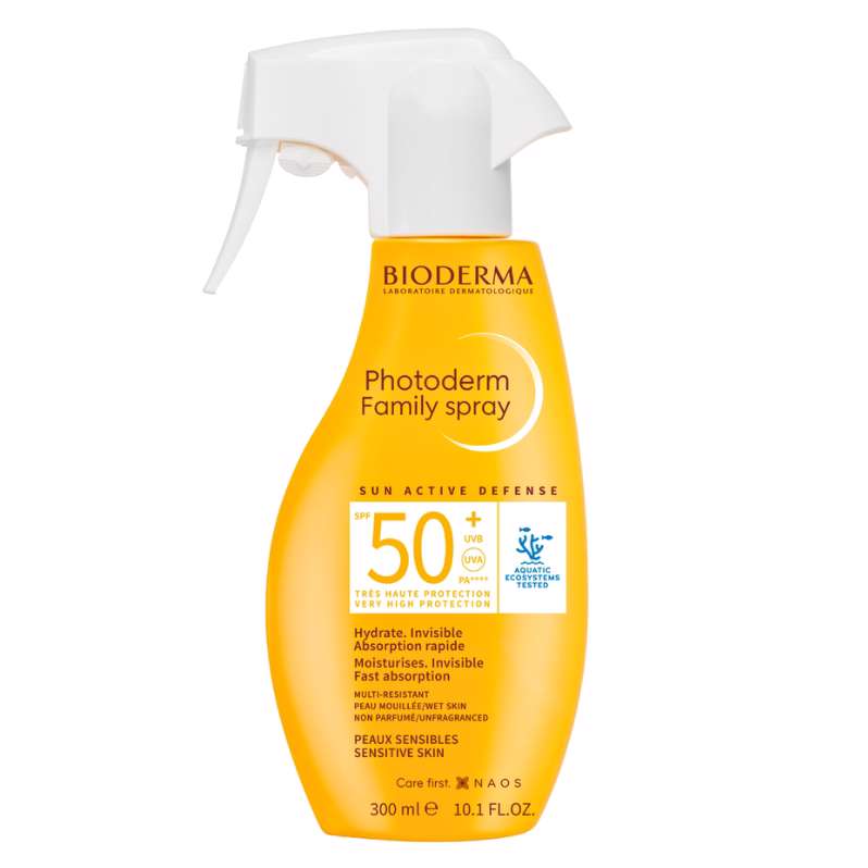 Bioderma Photoderm Family sprej prikladan je za cijelu obitelj (1+) za intenzivno izlaganje suncu. Lagane je teksture koja se lako razmazuje. Tekstura nije masna i ne lijepi se.
