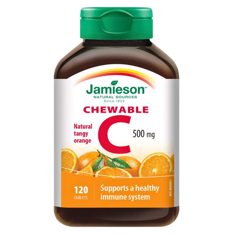 Jamieson Vitamin C 500 mg, tablete za žvakanje s naravnim okusom naranče su dodatak prehrani s prirodnim zaslađivačem.