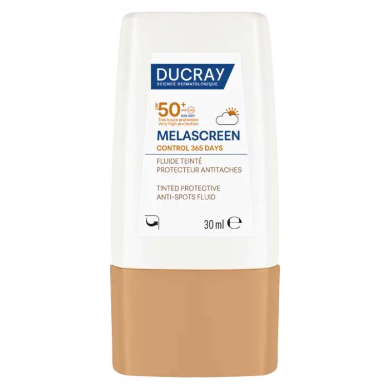 Melascreen Tinted zaštitni fluid protiv mrlja SPF50+ svojim aktivnim sastojcima, ispravlja i sprječava pojavu smeđih mrlja, a istovremeno štiti kožu od UVB, dugih UVA zraka, plave svjetlosti i zagađenja: