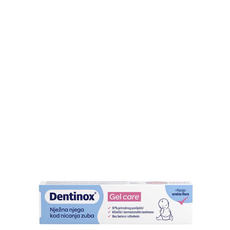 Dentinox Gel care – pametno rješenje za proces nicanja zubića kod djece. Dentinox Gel care kozmetički je proizvod koji pomaže umiriti, njegovati i zaštititi osjetljive desni tijekom nicanja zuba.