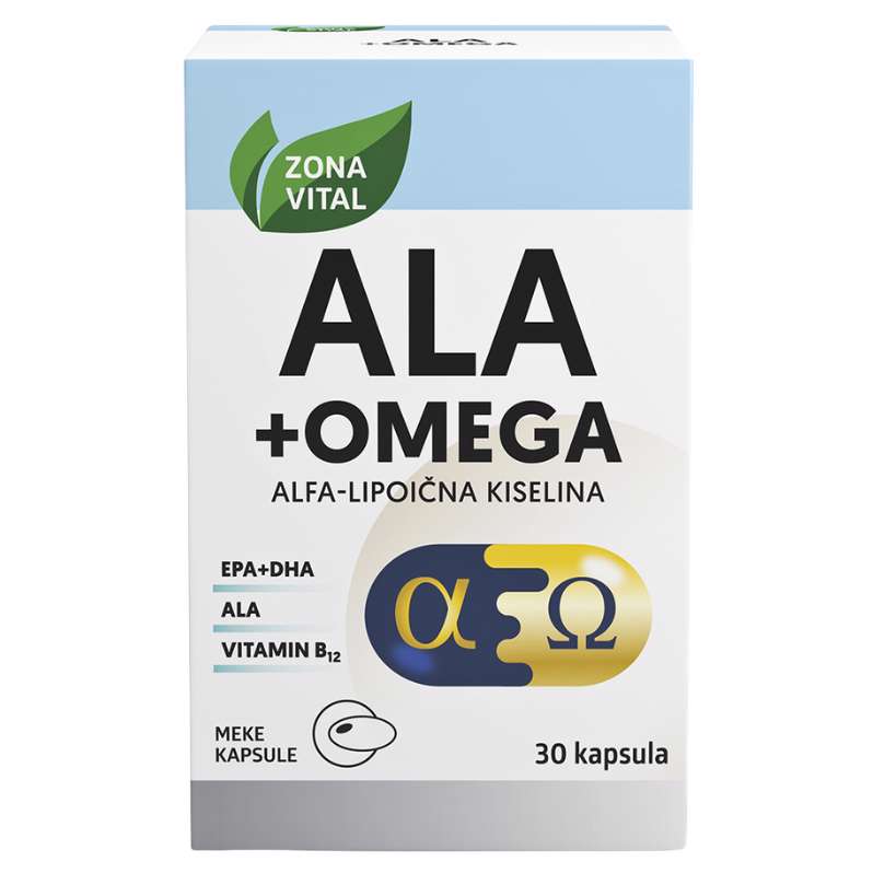 ALA+Omega je dodatak prehrani s ribljim uljem, alfa-lipoičnom kiselinom i vitaminom B12.