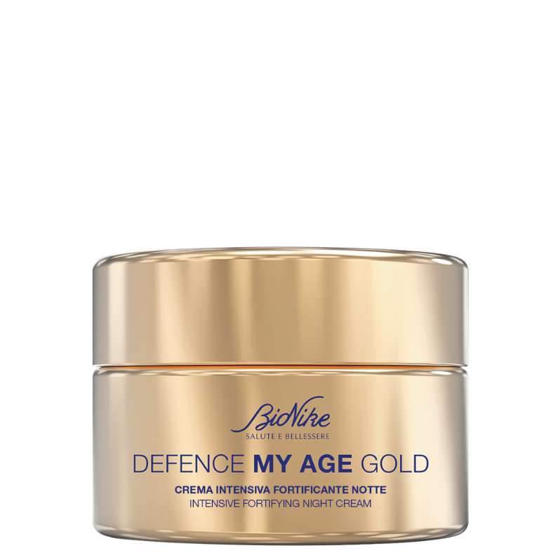 Noćna krema DEFENCE MY AGE GOLD zasniva se na patentu nazvanom "Skin Replenish Complex", odličnom izvoru kalcija ključnog za revitalizaciju i obnavljajućih peptida za poboljšanje elastičnosti i gustoće kože u zlatnim godinama. Noćna krema koristi se za intenzivnu njegu i regeneraciju umorne zrele kože. Krema se može preporučiti za sve tipove kože na kojoj su vidljivi znakovi nedostatka hormona u zrelom životnom razdoblju, pojačanog umora i gubitka tonusa kože te za svakodnevnu primjenu. Osobito je pogodna za kožu preosjetljivu na sastojke koji mogu biti uzročnici alergijskih reakcija, jer je strogo kontrolirana na najmanje tragove nikla, a uopće ne sadrži konzervanse, klasične kozmetičke parfeme niti gluten i njegove derivate.