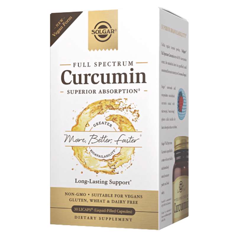 Solgar Curcumin sadrži standardizirani, pročišćeni i koncentrirani 95%-tni ekstrakt kumina izoliranog iz nativnog korijena kurkume (Curcuma longa). Biomimetične micele (nalik prirodnima) omogućuju 185 puta veću bioraspoloživost od nativnog kurkumina. Stabilnost u velikom rasponu pH od 1,1 do 8,0 (tj. osigurana adicorezistentnost). Apsorbira se 6,8 puta brže od nativnog kurkumina te je samo jedna kapsula Solgar Curcumina ekvivalentna 74 kapsule standardnog ekstrakta kurkumina od 100 mg.