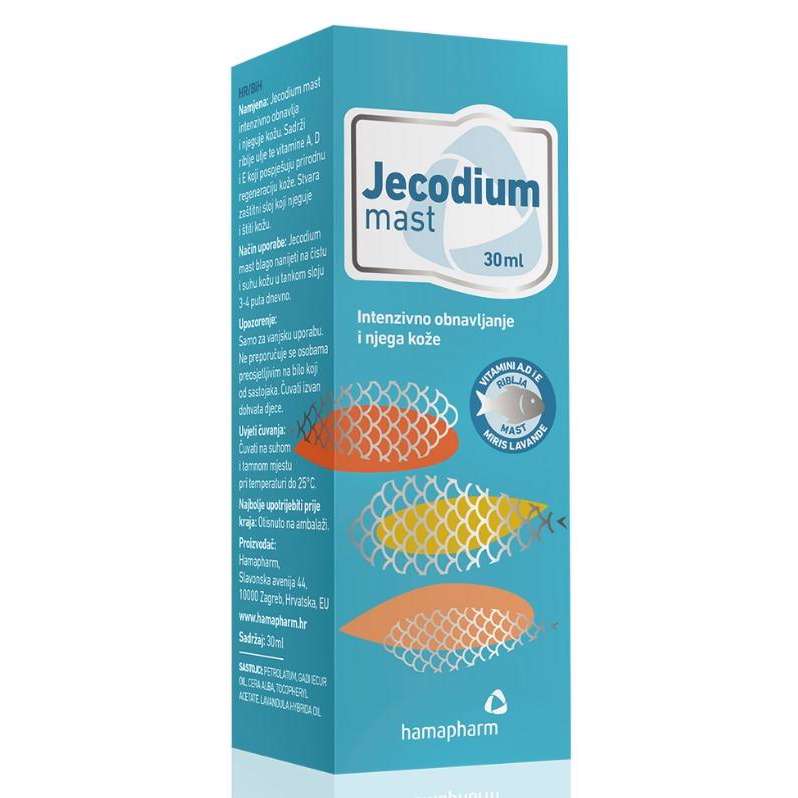 Jecodium mast sadrži riblje ulje te vitamine A, D i E koji sinergijskim djelovanjem održavaju vezivna tkiva kože u dobrom stanju te podupiru sposobnost obnavljanja kože.